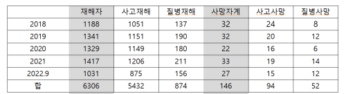 | ▲ 최근 5년간 하수 및 폐기물처리업종 산재 사망(표=용혜인 의원실 제공) |