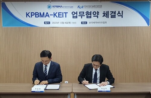 한국제약바이오협회는 한국산업기술평가관리원(KEIT)과 지난 8일 오후 서울 서초구 제약회관에서 산업 연구개발(R&D)의 확대 방안을 공유하고, 제약바이오분야의 글로벌 협력을 강화하기 위한 양해각서(MOU)를 체결했다고 9일 밝혔다.