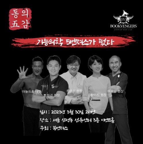 [mdtoday=김준수 기자] 독서클럽 북벤져스가 오는 30일 서울 삼성동 섬유센터 3층 이벤트홀에서 ‘동의5감’이라는 기능의학 콜라보 강연을 개최한다.