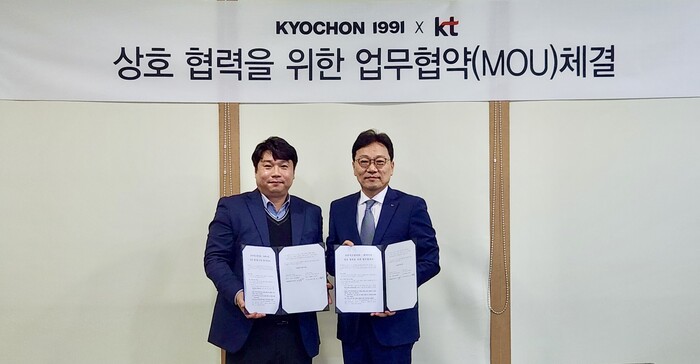 [mdtoday=김준수 기자] 치킨 프랜차이즈 교촌치킨을 운영하는 교촌에프앤비가 KT와 함께 테이블 무인 주문 시스템 가맹점 도입을 위한 업무협약을 체결했다고 11일 밝혔다.