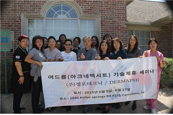 이와 관련해 셀로테크닉은 지난 6월 5일부터 17일까지, 미국 텍사스주 달라스에 위치한 DermaPhi Medical Spa에서 2주간 기술제휴 세미나를 열고, 여드름 및 노화 피부 관리를 위한 실무 중심의 피부관리 기술을 공유했다.