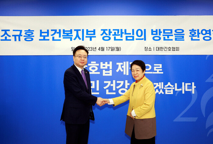 조규홍 장관은 “대한간호협회 창립 100주년을 맞이하는 뜻깊은 해에 대한간호협회가 국민들에게 필수의료를 안정적으로 제공할 수 있도록 적극적인 노력을 다하여 줄 것”을 요청하면서 “정부도 간호사 근무환경 개선 등을 위한 정책을 적극적으로 수립하겠다”라는 의지를 표명했다.