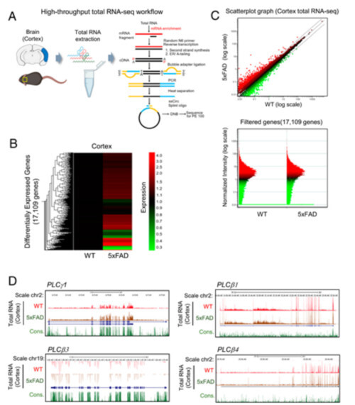 | ▲ High-throughput total RNA-seq분석을 통한 알츠하이머 의존적 유전자 변화 분석 (사진=한국뇌연구원 제공) |