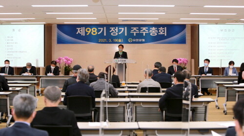 | ▲유한양행은 19일 오전 주주들이 참석한 가운데 대방동 본사 강당에서 제 98기 정기 주주총회를 개최했다. (사진=유한양행 제공) |