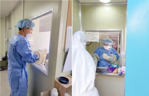 이에 플러스병원의 척추센터 강석봉 원장과 비수술치료센터 고희창 원장은 인천 연수구 보건소 선별진료소에서 코로나19 검사를 위한 검사채취 봉사를 펼쳤다. 현재 많은 의료 인력이 쉬는 날도 반납한 채 의료봉사를 진행하고 있다.