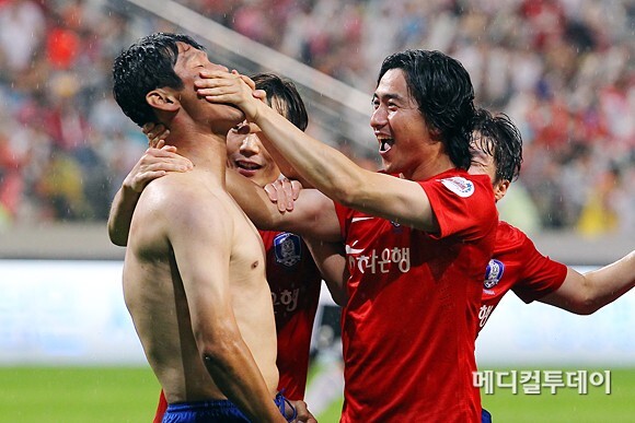 더불어 시원하게 유니폼을 벗어올린 최용수의 패기와 다르게 식스팩이 아닌 뱃살이 드러난 모습은 친근감을 더하는 동시에 색다른 웃음 포인트가 되기도.