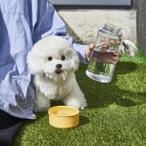반려견이 사용하는 실리콘 그릇은 반려견이 잘 인지할 수 있는 노란색을 적용했으며, 물병과 함께 열탕 소독이 가능해 위생적으로 관리할 수 있다. 너비 9cm, 높이 4.2cm에 300mL의 넉넉한 크기로 소형견에서부터 대형견까지 다양한 견종이 사용할 수 있다.