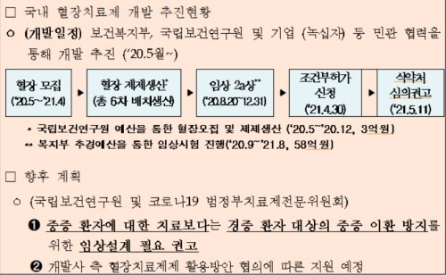 | ▲ 코로나19 혈장치료제 개발 관련 추진 현황 (사진=국립보건연구원 제공) |