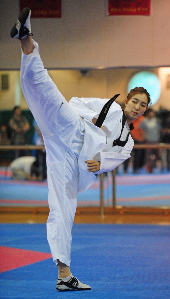 11일(한국시각) 영국 런던 엑셀 제1 사우스 아레나에서 열린 ‘2012 런던올림픽’ 태권도 여자 67kg 이하급 결승전에 출전한 황경선은 누르 타타르(터키)를 12-5로 제치며 올림픽 2연패를 달성했다.