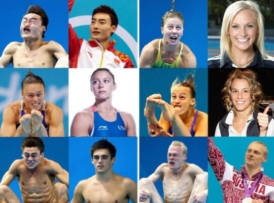 해당 게시물은 올림픽 다이빙 선수들의 모습을 모아놓은 것으로, 평상시 모습과 다이빙 입수 직전의 모습을 비교해서 게재해 두었다.
