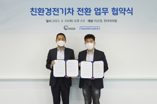 | ▲ 지오영이 지난 24일 현대캐피탈과 ‘친환경전기차 전환’을 위한 업무협약을 체결했다 (사진=지오영 제공) |