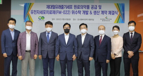 이번 계약 체결을 통해 강스템바이오텍은 세포유전자치료제의 원료의약품 출발물질로서 자사의 제대혈 줄기세포를 큐라미스에 제공하고 FM-022 비임상 및 임상 시료용 세포유전자치료제를 위탁 생산하여 공급한다.