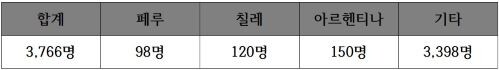 실제로 강기윤 의원이 법무부를 통해 확인한 남미발 국내 입국자 현황에 따르면 변이바이러스가 유행하기 시작한 올해 초부터 7월까지 총 3766명이 국내에 입국했으며, 각각 페루 98명, 칠레 120명, 아르헨티나 150명 등으로 집계됐다.