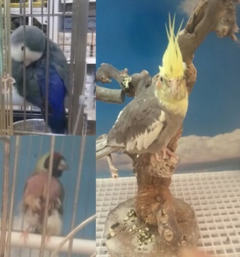 | ▲오후 8시 졸고있는 모란, 가슴털 벗겨진 호금조, 부정교합 왕관 앵무새 (사진=권지원 기자) |
