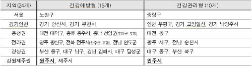 건강관리형의 경우 서울 중랑구, 인천 부평구, 경기 고양시일산구·남양주시, 대전 동구, 광주 서구, 전남 순천시, 대구 동구, 부산 북구, 원주시 등이 시범지역이다.
