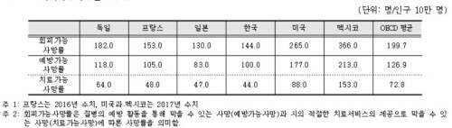 | ▲회피가능 사망률(2018) (사진=대한의사협회 제공) |