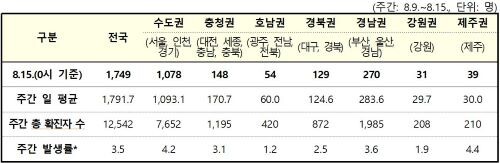 | ▲권역별 코로나19 신규 확진자 발생 현황 (자료=질병관리청 제공) |